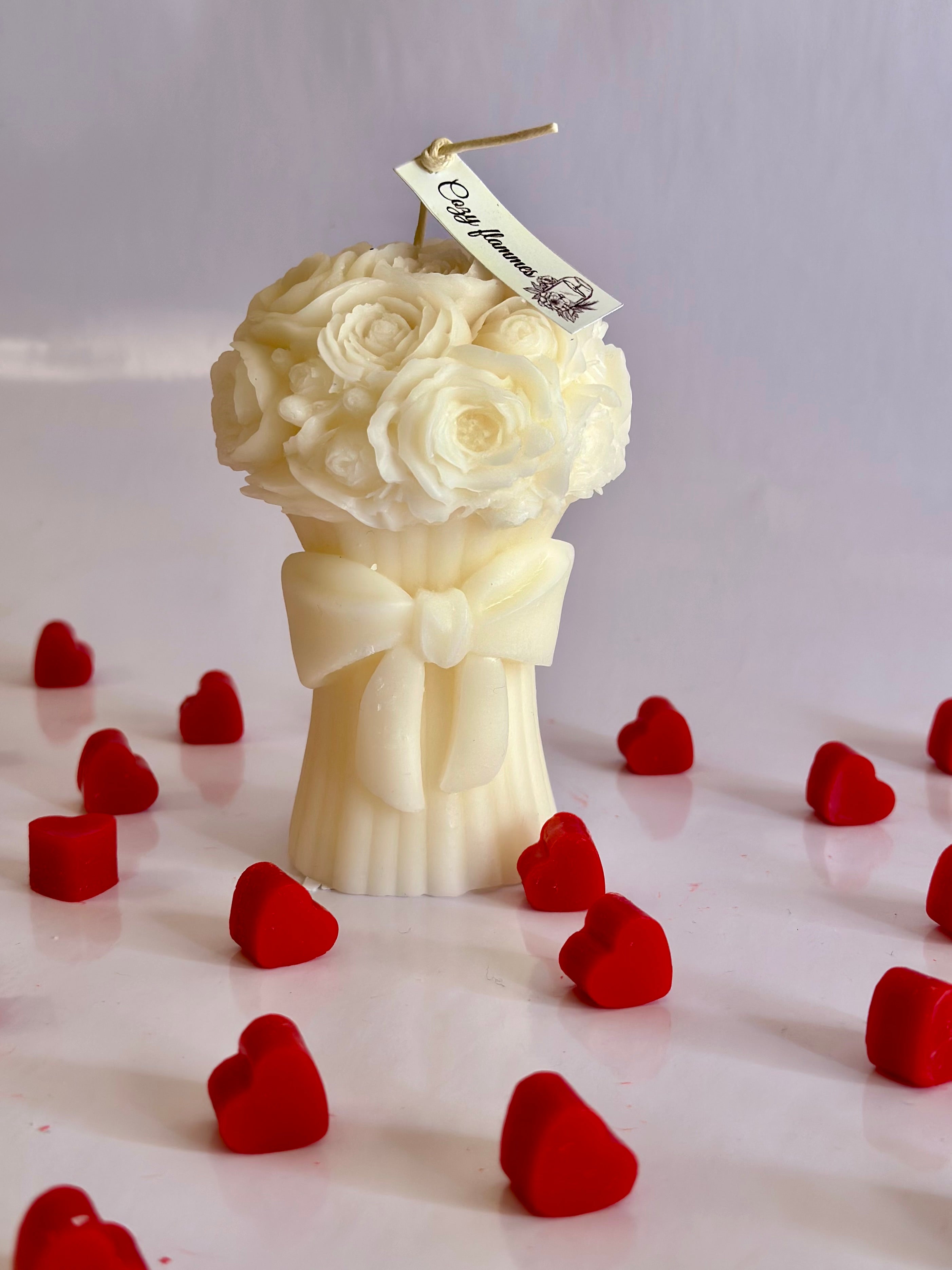 Illuminate your space with the elegance of our Blooming Grace Candle, a stunning floral-inspired creation that radiates charm and warmth. Designed to resemble a delicate bouquet tied with a graceful bow, this handcrafted candle is perfect for adding a romantic and sophisticated touch to any setting. Whether as a gift for a loved one or a beautiful addition to your home, its intricate detailing and soft glow make it a truly captivating piece. Crafted from high-quality wax, this candle is a timeless symbol of love and beauty.