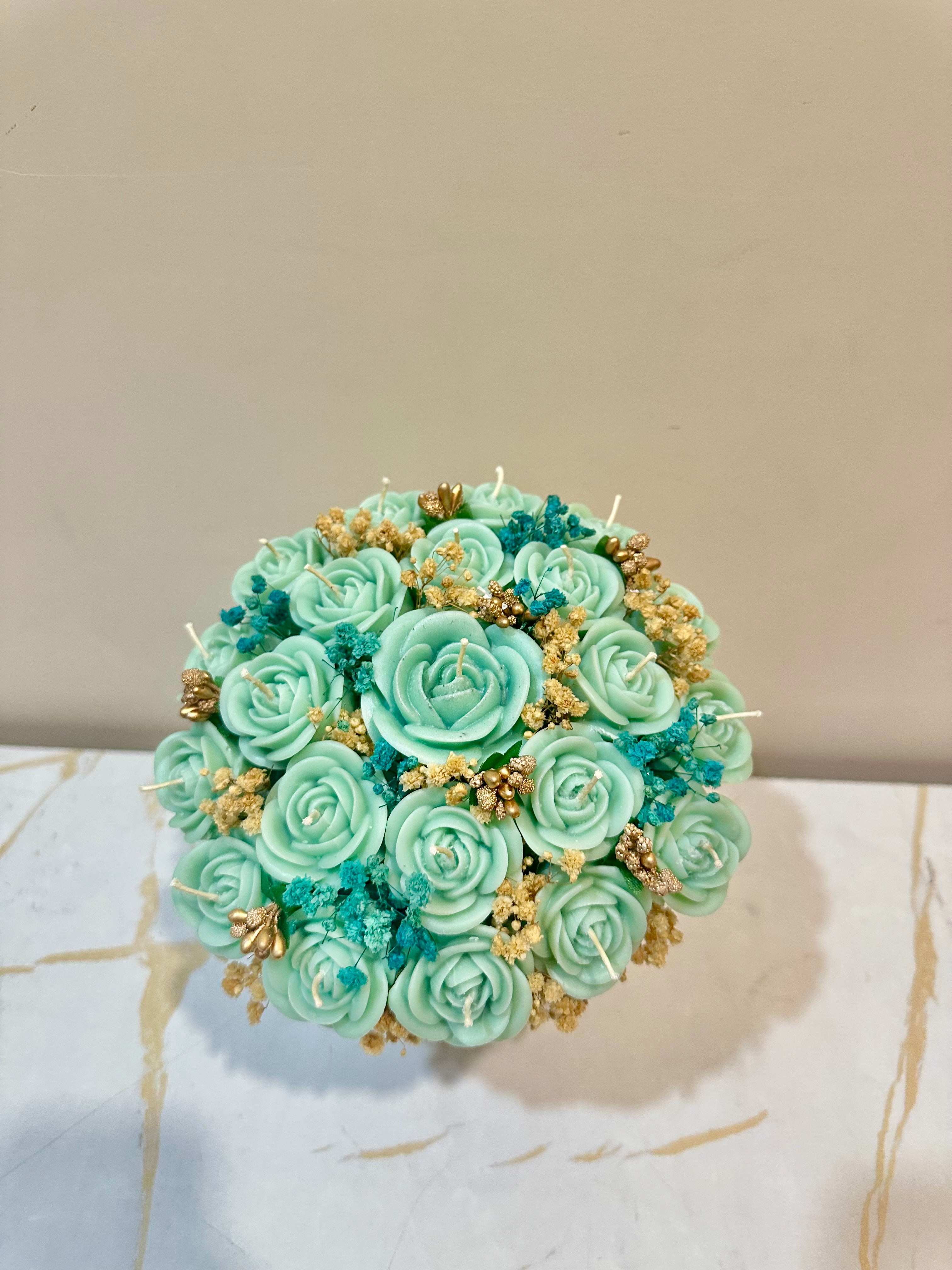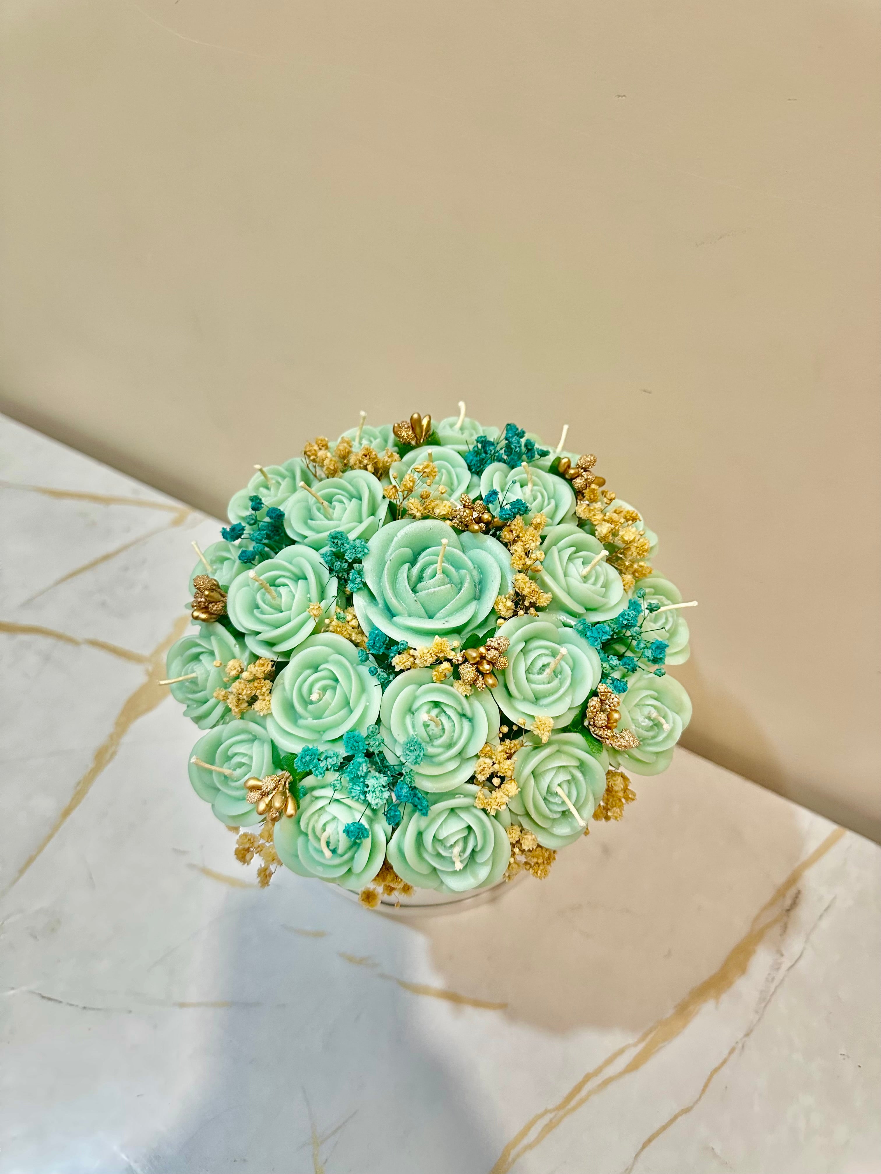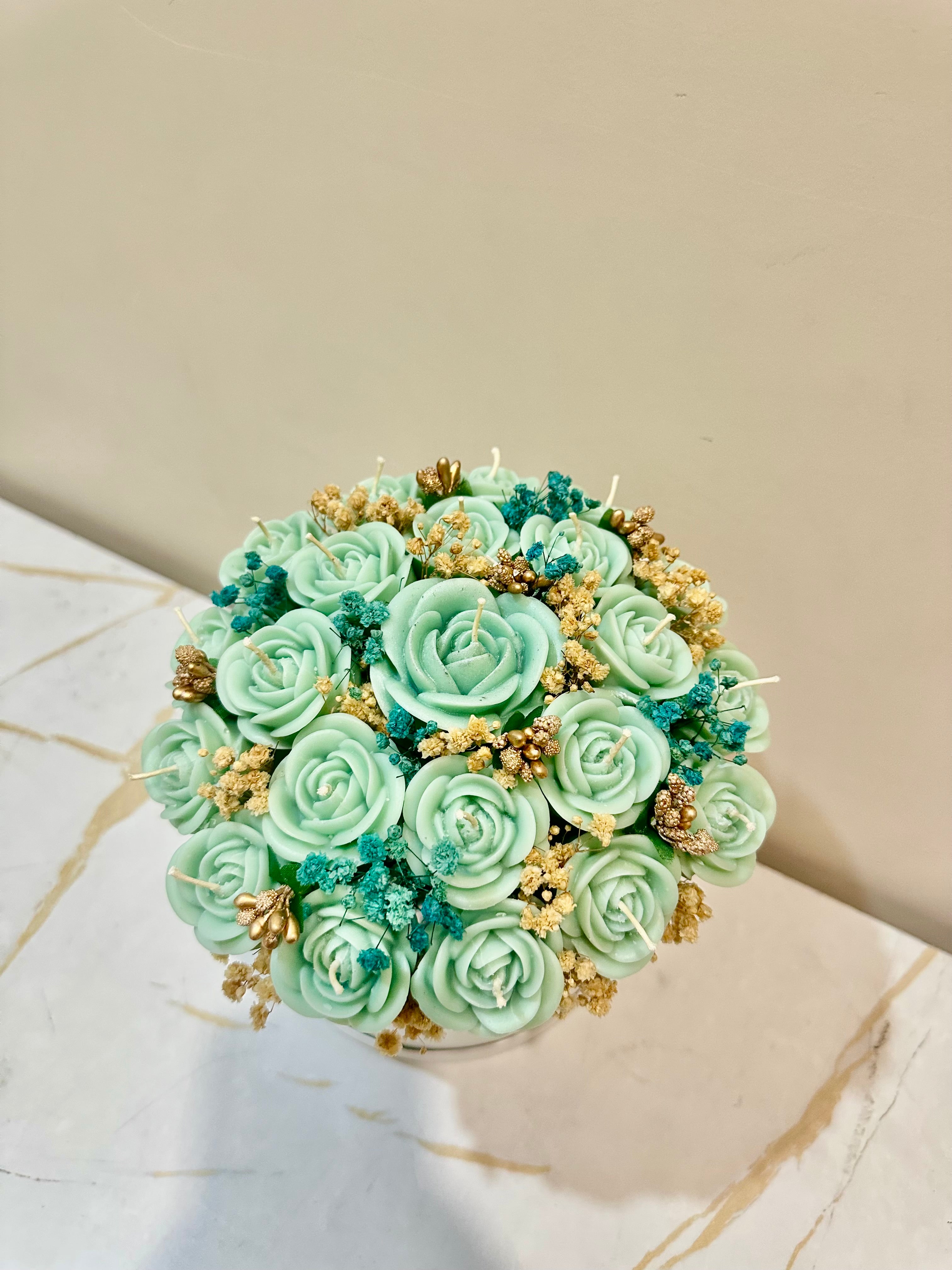 Fresh, vibrant, and timeless — our Mint Blossom Candle Bouquet is a perfect fusion of elegance and charm. Hand-poured rose candles in a soothing mint green hue are beautifully arranged with dried florals and rustic pampas grass, all set in a premium floral box.